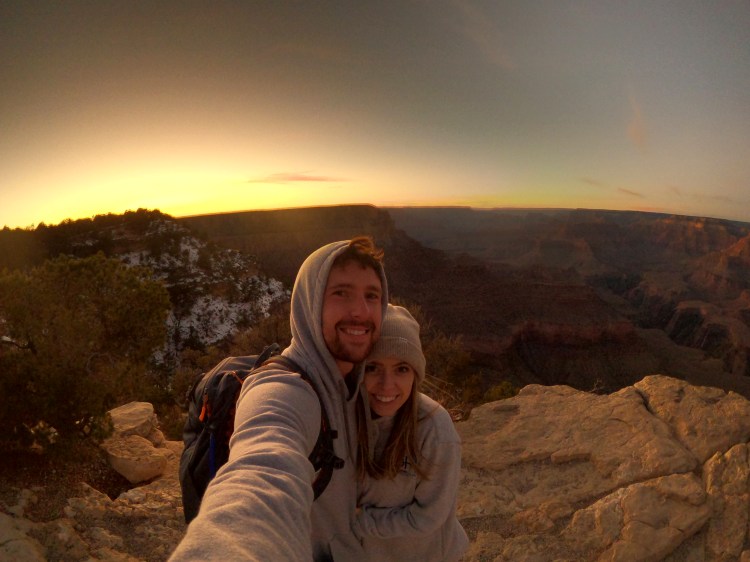 Thanks to our wonderful physiques (+25 breaks), we were able to make it back early and pick up dinner at the cafeteria in the Grand Canyon Village Market & Deli (get the black bean burger!!). While there, we asked a ranger about the best sunset spot and he suggested Yavapai Point.