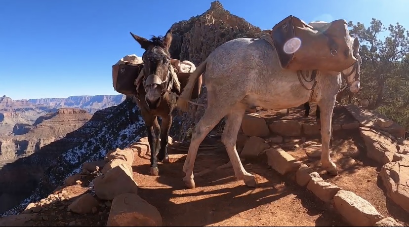 At Cedar Ridge, we encountered a crew performing maintenance on the trail. We could tell they had been out there for hours and the work looked tiring. Unbothered by carrying large buckets of stones, they were singing the Shrek soundtrack and cracking jokes as we walked by. I guess working with a view like The Grand Canyon makes any labor fun?