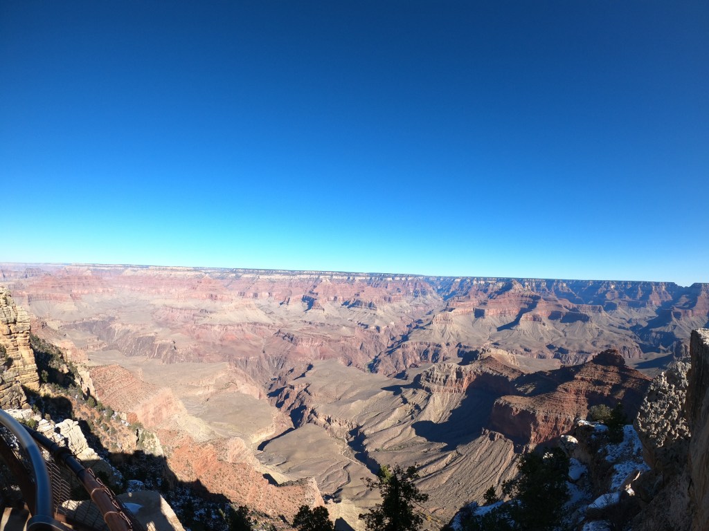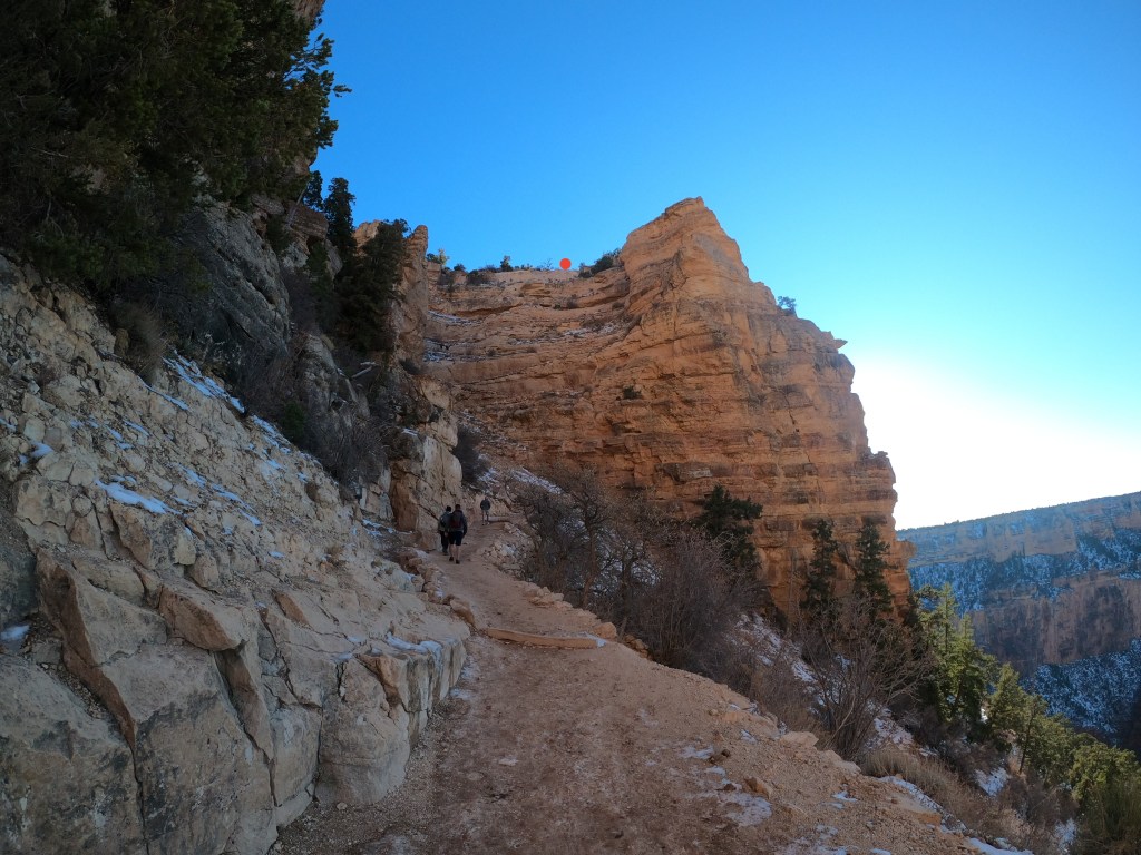 Coming into the trip, our research told us that Bright Angel Trail is the most popular hike at the park. We were ready to take it on but after speaking with a ranger, he advised that the trail was too icy for hiking. How many people are aware that The Grand Canyon sits at over 6,500 feet above sea level???